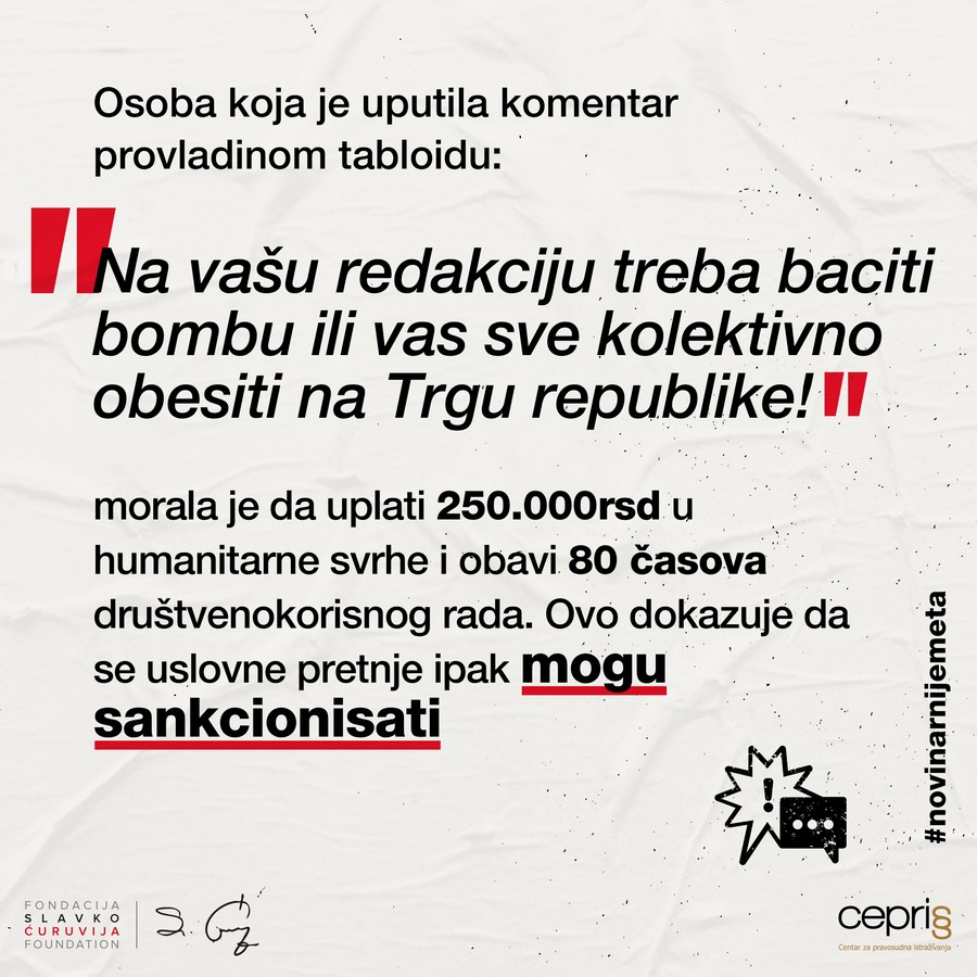 Godišnji izveštaji Slavko Ćuruvija fondacije i Centra za pravosudna istraživanja „Zaštita slobode govora u pravosudnom sistemu Srbije” i „Sloboda izražavanja pred sudom” predstavljaju pokušaj da se utvrdi činjenično stanje kada je reč o zaštiti medijskih sloboda i medijskih profesionalaca u pravosudnom sistemu Srbije. Izveštaji su nastali na osnovu temeljne analize sudskih postupaka koji su vođeni kako u parničnim postupcima prema Zakonu o javnom informisanju i medijima tako i u oblasti krivičnopravne zaštite novinara u slučajevima pretnji, zastrašivanja i fizičkih napada.